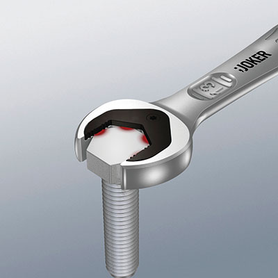 开口端的复合定位系统使扳手与螺母稳定配合,在大扭矩下工作也很安全;开口端的回转角仅 30°,